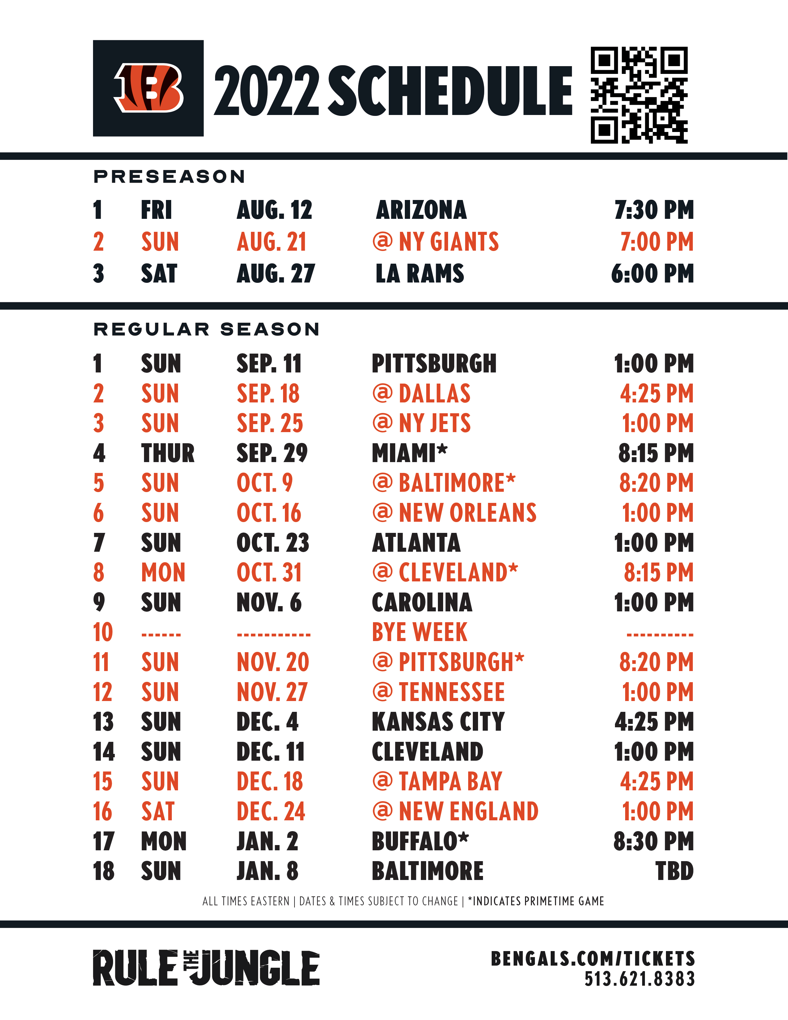 Schedule Cincinnati Bengals Bengals Com